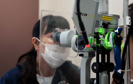 На сегодняшний день общепризнанным методом лечения диабетического поражения органа зрения, доказавшим свою эффективность в ходе многоцентровых клинических исследований, является своевременная панретинальная лазеркоагуляция сетчатки. По мнению Исследовательской группы Всемирной Организации Здравоохранения, раннее выявление и проведение лазерного лечения позволяет сохранить зрение и предотвращает дальнейшее прогрессирование заболевания приблизительно в 70% случаев. В нашем центре используется наиболее современное оборудование, которое позволяет выполнять лазерное вмешательство бережно, щадяще по энергетическим параметрам и по технологии нанесения лазерных ожогов, максимально комфортно для пациентов.